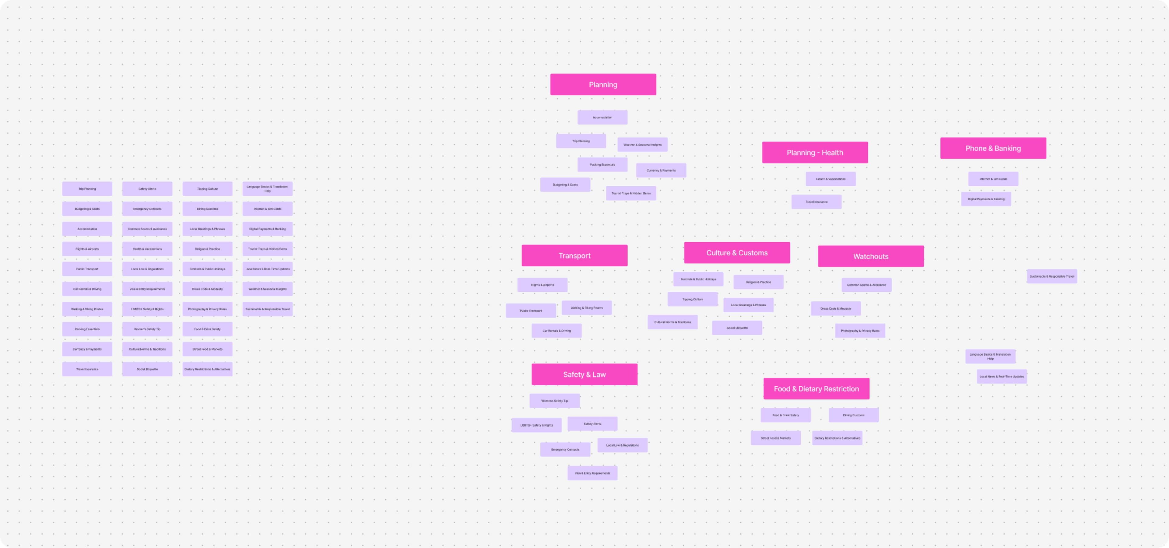 Card sorting results informed content categorisation and menu structure, ensuring navigation aligned with users' mental models of travel information organisation.